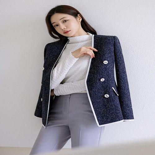 [루이스엔젤] 화이트 라인 노카라 더블 보카시 트위드 자켓