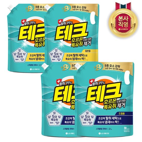 ★MD추천★테크 호르몬 특유취제거 실내건조 액체세제 리필 2L x 4개 (일반/드럼 중 택1)