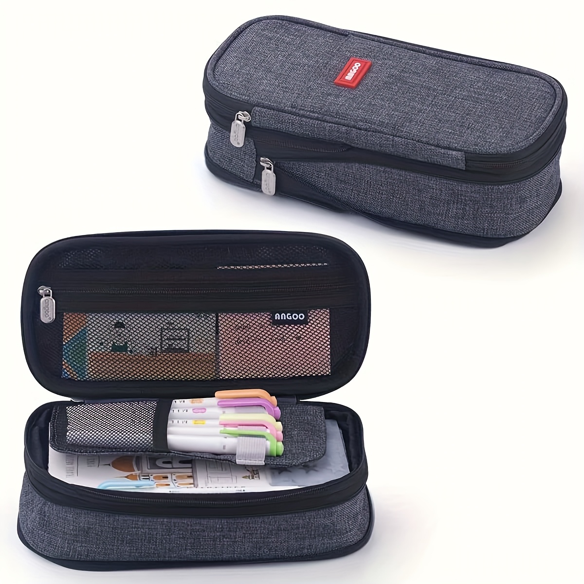 TEMU 비즈니스용 넉넉한 블랙 필통 | 문구류를 위한 튼튼한 수납 상자 | 사무실 및 학교를 위한 편리한 데스크탑 정리함 | 십대, 학생 및 성인을 위한 이상적인 선택 | 신학기 필수품