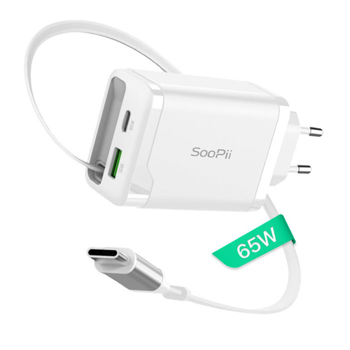 SOOPII GaN 65W 노트북 C타입 릴케이블 일체형 초고속 멀티충전기 3U35KR