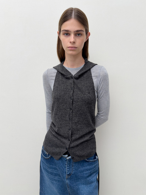 [다이애그널] 홀터 후디 니트 베스트 (다크 그레이)
