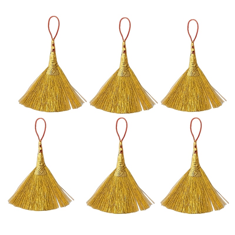 TEMU 6개 세트 풍수 부자 빗자루, 빨간색 & 금색 술 장식, 악령 퇴치 및 번영 증진, 집들이 선물, 풍수 장식용 길상 부적