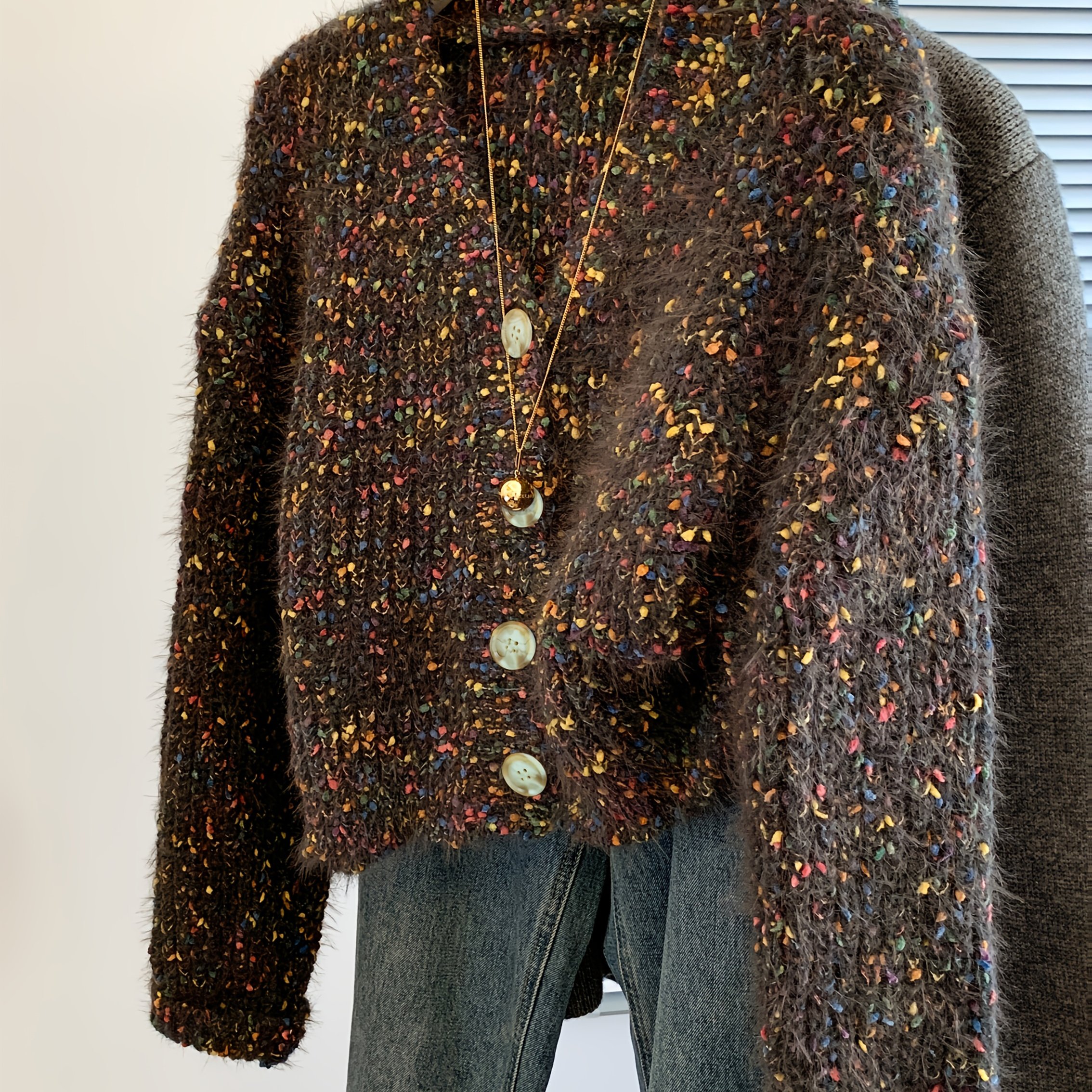 TEMU 빈티지 폴카 도트 브이넥 여성용 소프트 스웨터 가디건, 새로운 가을/겨울 스타일, 릴랙스 핏