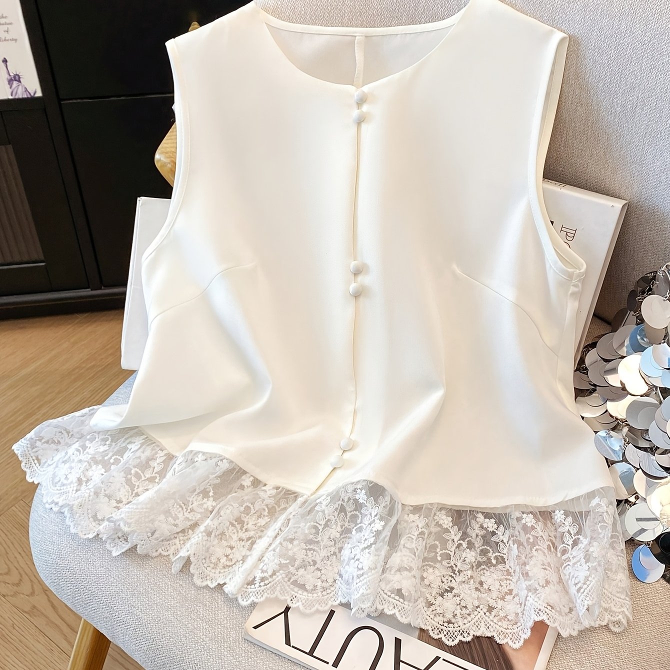 TEMU 스프링 신상 여성용 조끼, 패셔너블, 다용도, 우아한, 겉옷, 나무 귀 헴, 레이스 조끼, 짧은 단색 탑, 고급 조끼, 웨이스트코트 겉옷