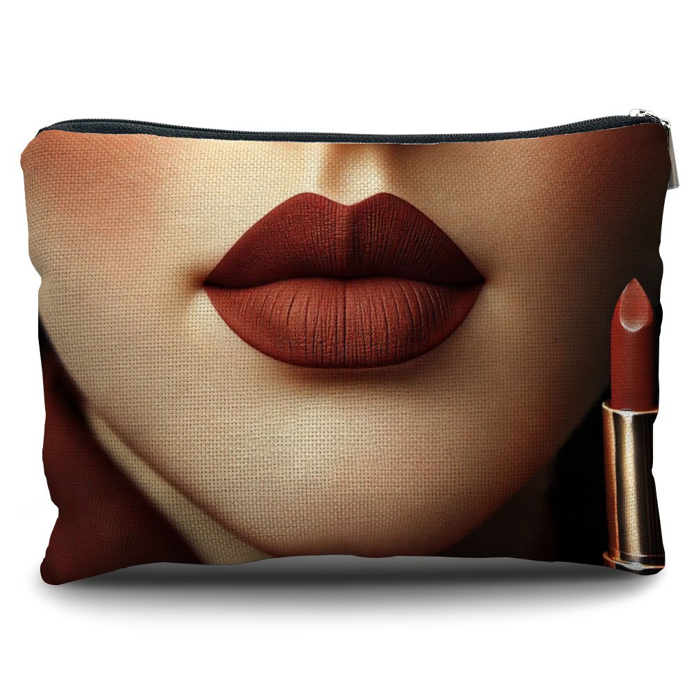 TEMU 고급스러운 딥 퍼플 립스틱 디자인의 휴대용 린넨 메이크업 가방. 재사용 가능하며 여성에게 완벽한 아이템입니다. 지퍼가 달린 이 야외 필수품 수납 파우치는 생일, 크리스마스 또는 새해를 위한 개인화된 선물로 적합합니다.|파우치|린넨|립스틱