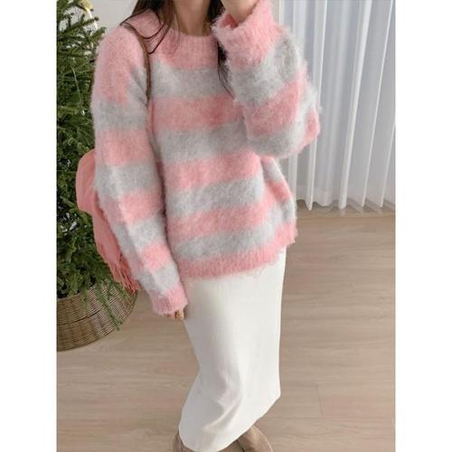 [하젤]퍼니써니 스트라이프 모헤어 울니트_W3713