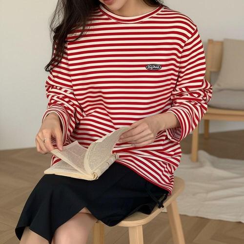 웬디 / 심플 라운드넥 스트라이프 긴팔티 TL13635
