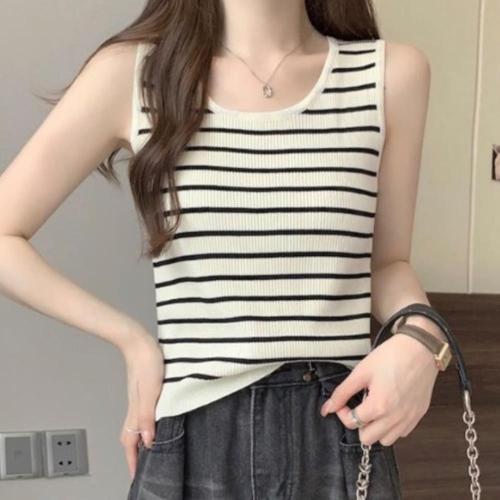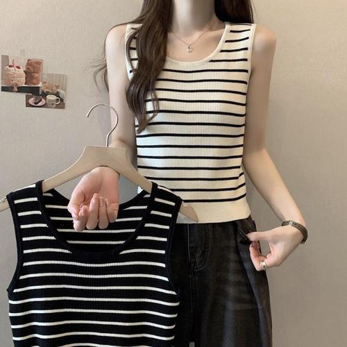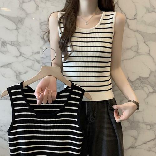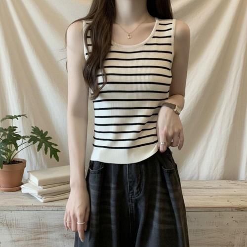 [옷자락]여성 일상 레이어드 줄무늬 나시