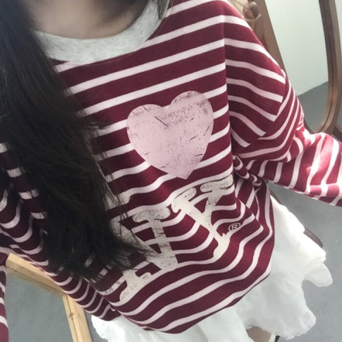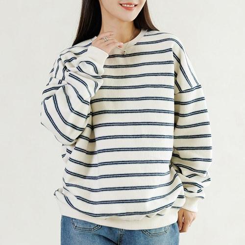 [다잇템]여성 맨투맨 U넥 보온 줄무늬 박시티