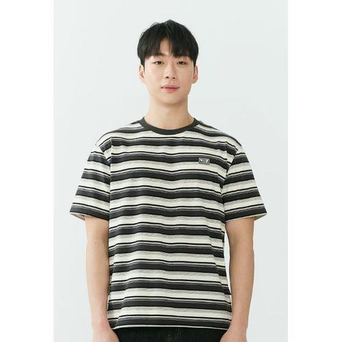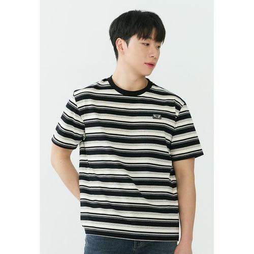 [잠뱅이]남성) 스트라이프 스몰 와펜 세미오버핏 반팔 티셔츠 AQ2WTS402-BK
