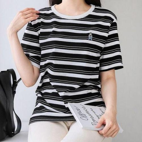 옷자락 / 여자 링거라운드 스트라이프 반팔티 썸머 면 티셔츠