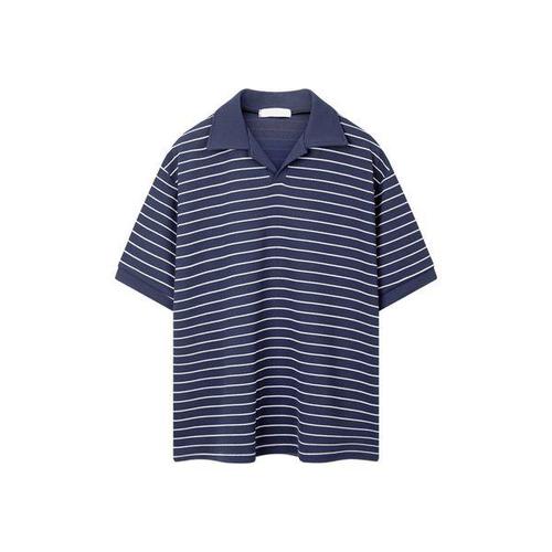 남자 워셔블 라운드넥 단가라 반팔 니트티 GN-KNH-Q014-네이비