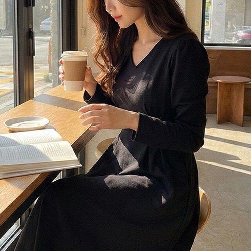 [핑크엘리제]브이넥 단정무드 오피스룩 테라문미디원피스
