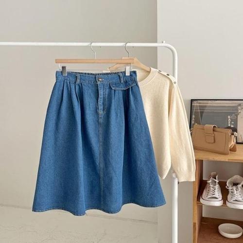 [다잇템]여자 봄 레트로 데님 버튼 청치마 데님 스커트