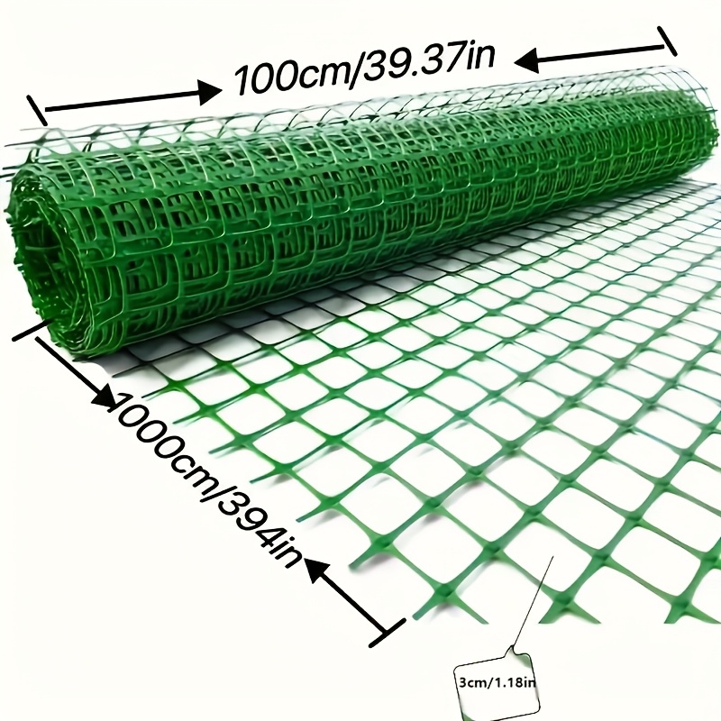 TEMU 고강도 두꺼운 초록색 사각형 플라스틱 메쉬 1롤 - 100cm*1000cm 격자형 구조 펜스, 가금류 닭장, 정원 덩굴식물, 임시 프로젝트용, 내구성 있는 야외용 그물, 야외 펜스 패널, 덩굴식물 지지대