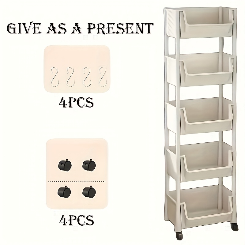 TEMU 5단 이동식 수납 카트 - 거실, 침실, 사무실, 기숙사 공간에 적합한 다용도 정리함 (식료품, 장난감, 책, 화장품, 문구류 보관용)