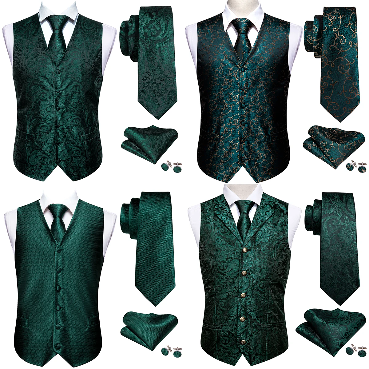 남성용 럭셔리 조끼 수트, 그린 페이즐리 플라워 슬림 핏, 남성 드레스, 민소매 정장 작업 조끼, 넥타이, 행키 질렛, 배리 왕