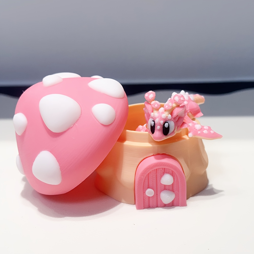 TEMU 3D 프린팅 귀여운 버섯 집 + 버섯 드래곤 모델 플라스틱 피규어 데스크탑 장식 조각품 휴일 선물