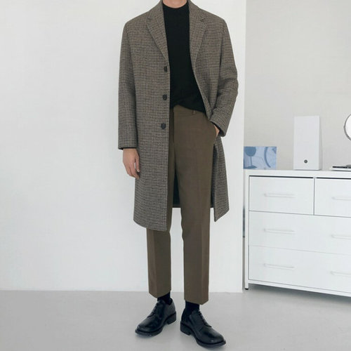 모찌봉 / 깔끔한 댄디핏 남성 데일리 체크 울 코트