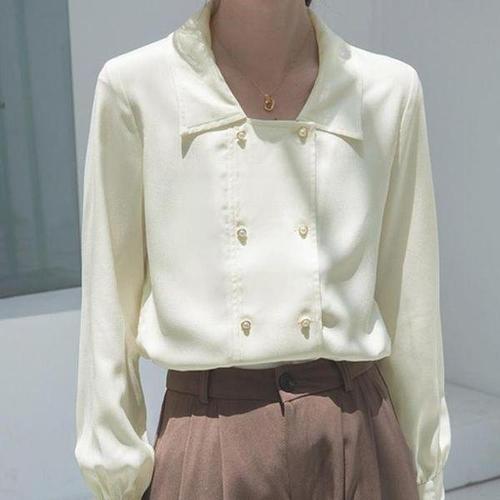 [셀러허브_여성트랜드패션]여자 출근룩 진주 알바 더블 버튼 블라우스