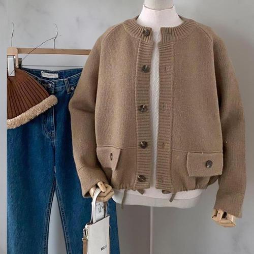 [다잇템]여성 롱슬리브 스트랩 더블포켓 단추 카디건