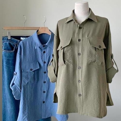 [다잇템]여자 출근룩 버튼 데일리 남방 더블포켓 남방