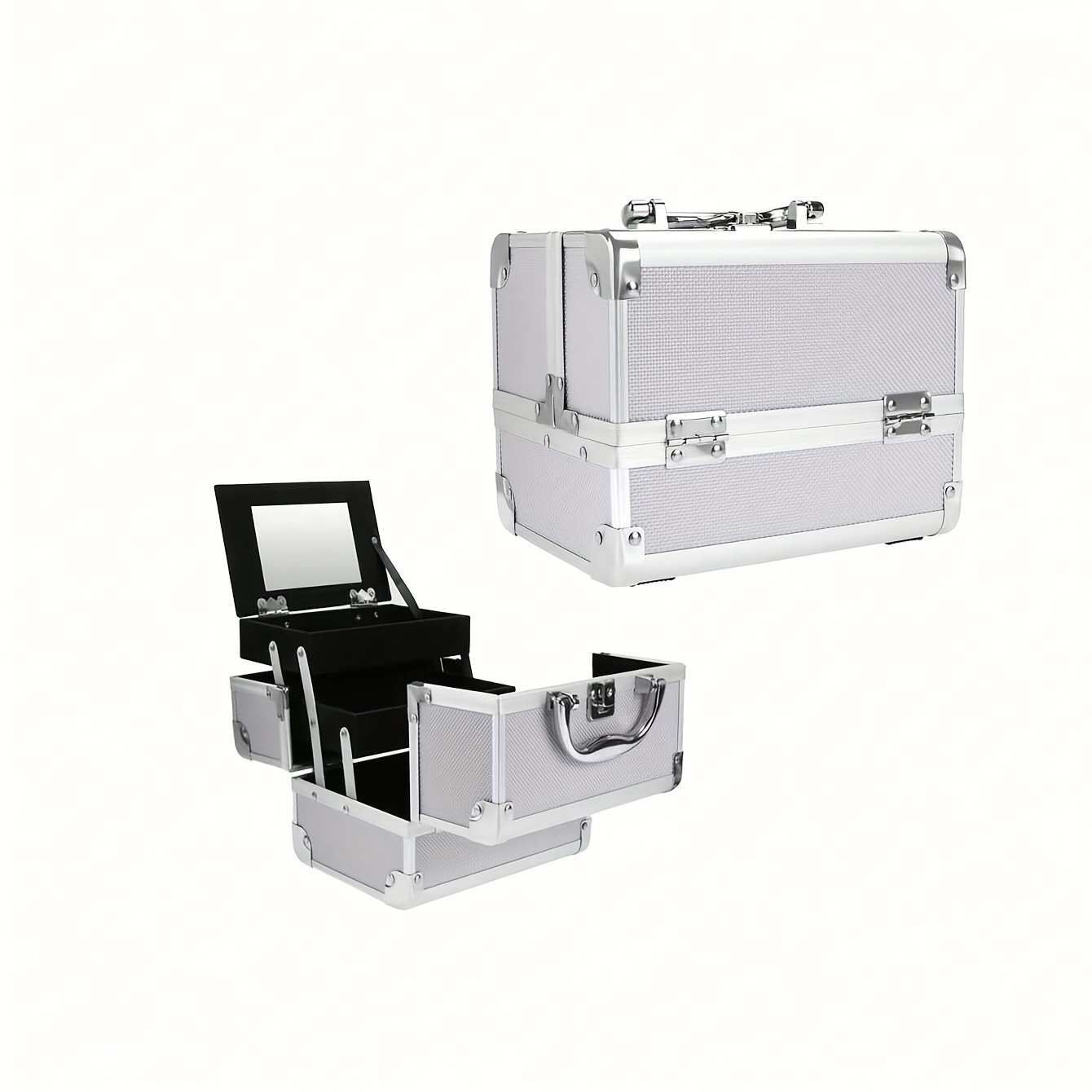 TEMU 1pc 핑크 & 블랙 메탈 메이크업 트레인 케이스, 잠금, 거울 및 4개의 구획 - 휴대용 화장품 보석 정리함, 여행, 살롱, 네일 기술 - 내구성 있는 미적 용품 보관함, 메이크업 정리함 여행, 살롱 액세서리 보관함, 세련된 디자인, 튼튼한 구조, 미용 애호가|네일재료