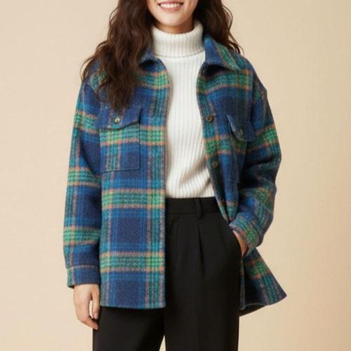 [다잇템]여자 주머니 덤블 셔켓 격자 빅사이즈 자켓