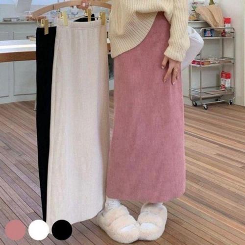 유연성 우수한 뒷트임 립 롱스커트 스커트 레이디 여자하의 청 WFLF2GT
