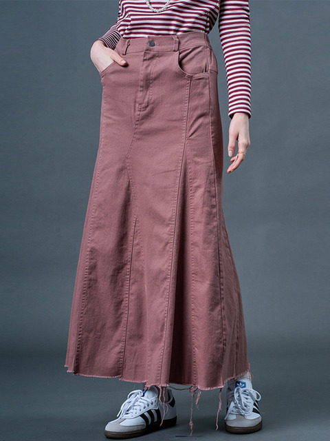 [옷자락]여자 머메이드 청 데님 치마 빈티지 롱스커트