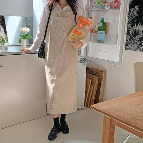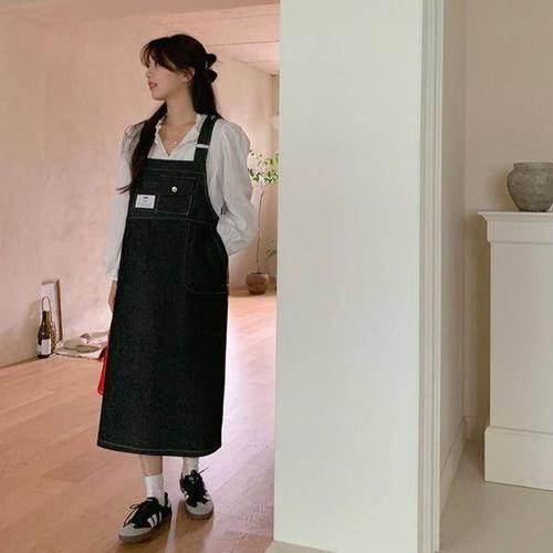 [나크21] 언발 앞트임 데님 멜빵 롱원피스 NK51-OI-1