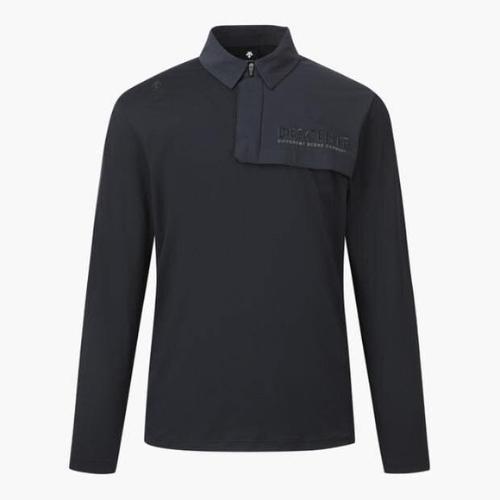데상트골프티셔츠 VQA DQ42MFTLO3-BLKG 남성 가루이시 반집업 긴팔 티셔츠 / BLACK
