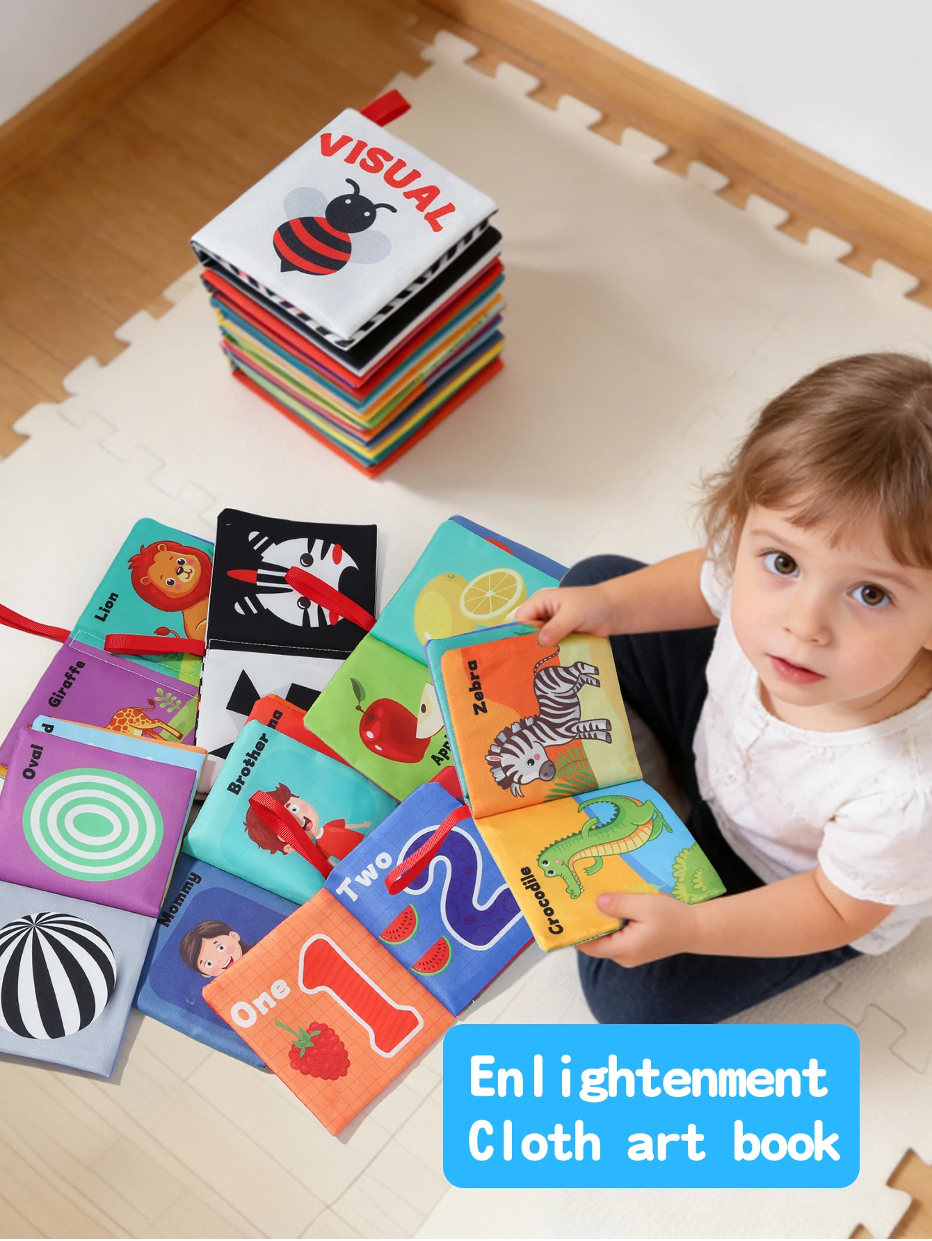 6Pcs 아기 헝겊 책 세트 조기 학습을위한 찢어지지 않는 감각 책 과일 동물 번호 인식 장난감 0-12 개월
