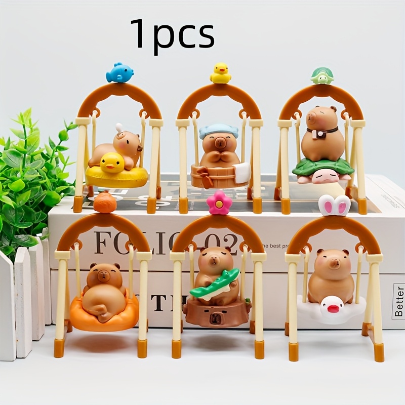 TEMU 1개 미스터리 럭키 박스, 스윙 캡이바라 플러시 장난감, 귀여운 PVC 인형, 홈 데코/차량 장식용, 생일 또는 휴일 선물로 완벽, 크리스마스 및 할로윈 장식, 가을 집 꾸미기 컬렉터블 피규어