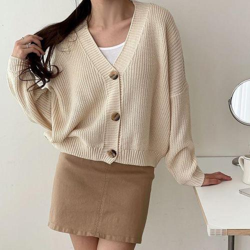 [옷자락] 여자 하찌니트 브이넥 오버핏 간절기 데일리룩 가디건