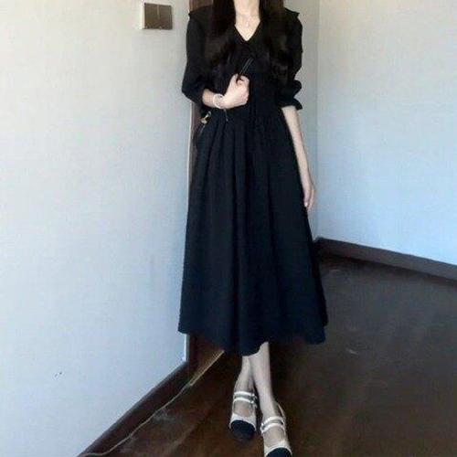 [아리엘스타일]브이넥 데일리룩 하객룩 모던룩 비코라롱원피스