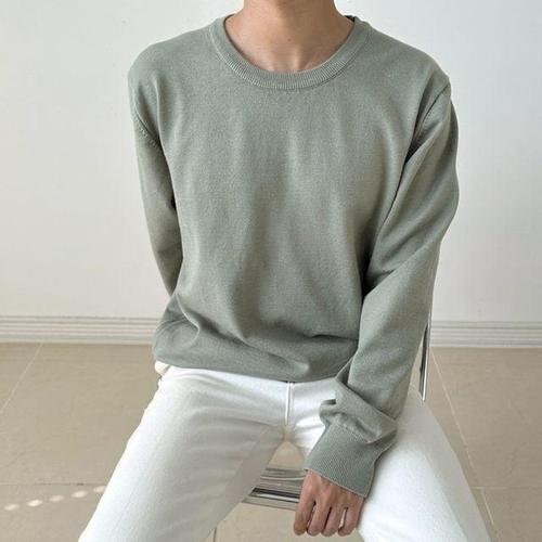 깔끔 솔리드 데일리룩젠틀맨 심플 울 크루넥 니트탑