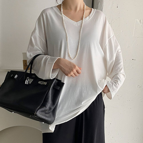 나야홍 / 빅사이즈 509 언발밑단트임롱티셔츠 DMOV207