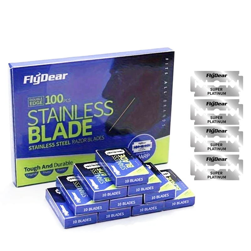 100PCS 스테인레스 스틸 소재 내구성 이발사 면도 블레이드 더블 에지 안전 면도기 추가 스테인레스 블레이드