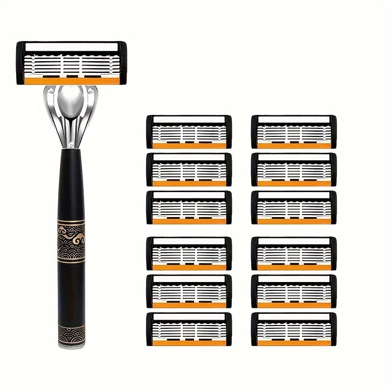 TEMU 남성의 수염 면도기, 6겹 날카로운 면도날, 미끄럼 방지 핸들, 교체용 면도날, 남성용 면도 도구