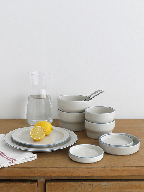 [라운드앤플랫] 플로우 2인 홈세트 9P 그레이 _ 도자기 선물세트 핸드페인팅예쁜접시 그릇 국내산