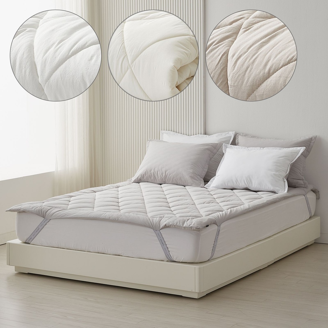 국산 두툼한 토퍼 매트리스커버 (일체형)/침대커버 매트 누리온 싱글 슈퍼싱글 퀸 S SS Q 4면 밴딩