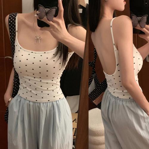 [신상오픈런]여성용 유넥 땡땡이 패턴 백트임 나시탑