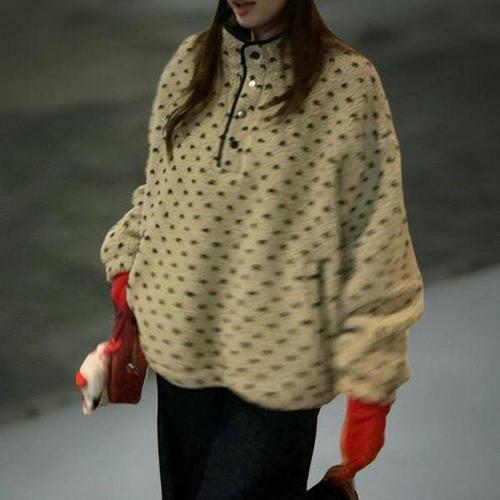 [신상오픈런]여성 캐주얼 도트무늬 루즈핏 뽀글이 후리스 맨투맨