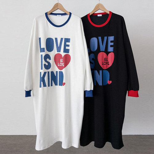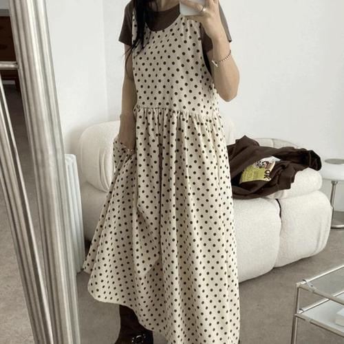 [옷자락]여성용 박시핏 프린트 도트 롱홈웨어 원피스