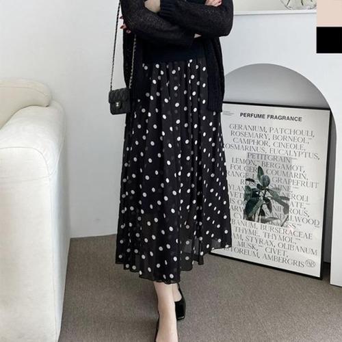 [모노무드]LMO 러블리한 도트무늬여성용 베이직 허리밴딩 쉬폰소재 롱스커트