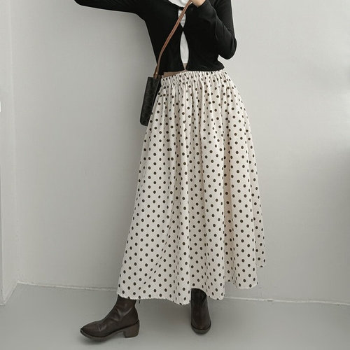 [엘루이즈][엘루이즈] 스웰리 도트 밴딩 롱스커트(3color)