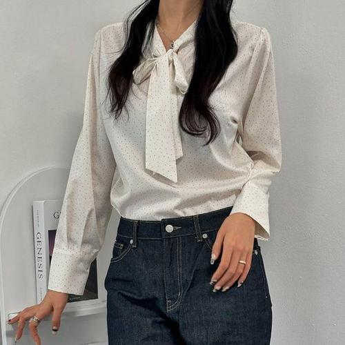 [르샵]도트 패턴 리본넥 블라우스 BP8BL011A