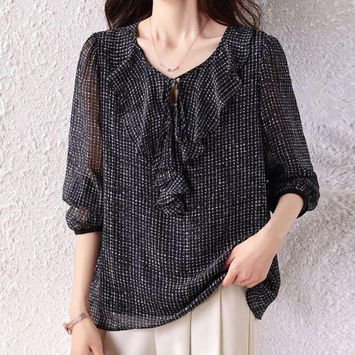 [블랙퀸]도트 라운드넥 러플 블라우스 blk004544