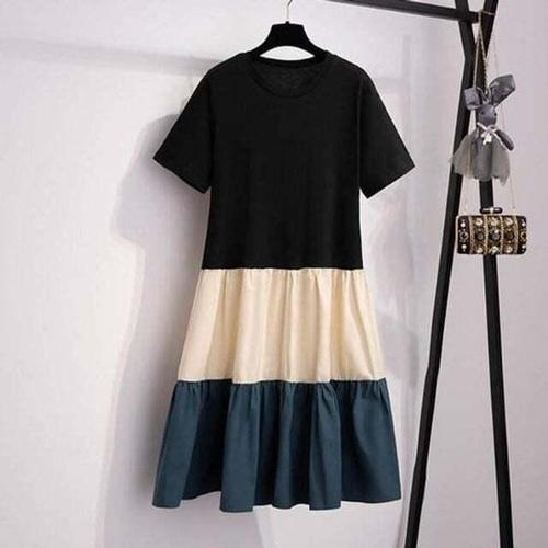 [에이치플러스몰]독특한 컬러 배색 여름 반팔 여성 원피스 휴양 바캉스